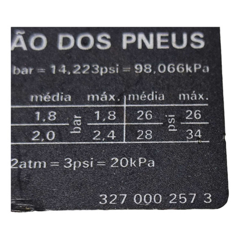 | Tipo de veículo | Carro/Caminhonete |